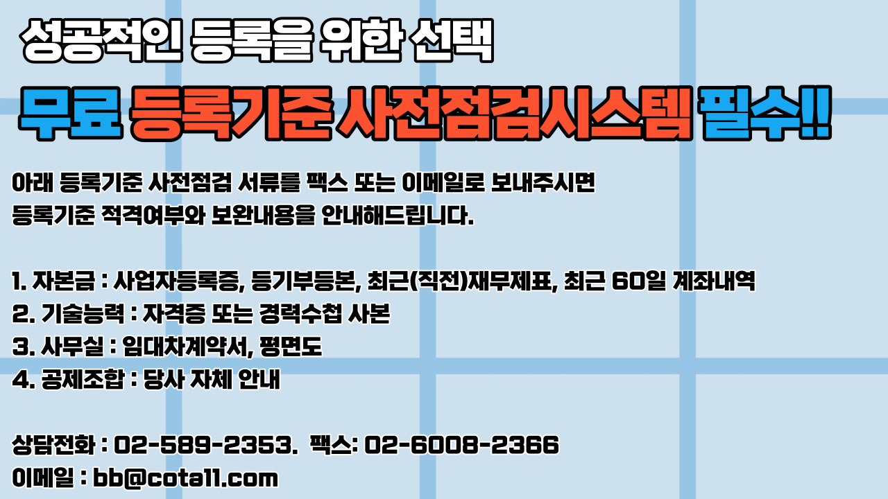 코타는 여러분들에게 등록기준 사전점검시스템을 무료로 제공하고 있습니다.